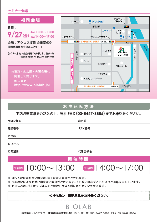 バイオラブ製品のご導入をご検討中のサロン様向け無料セミナーです。